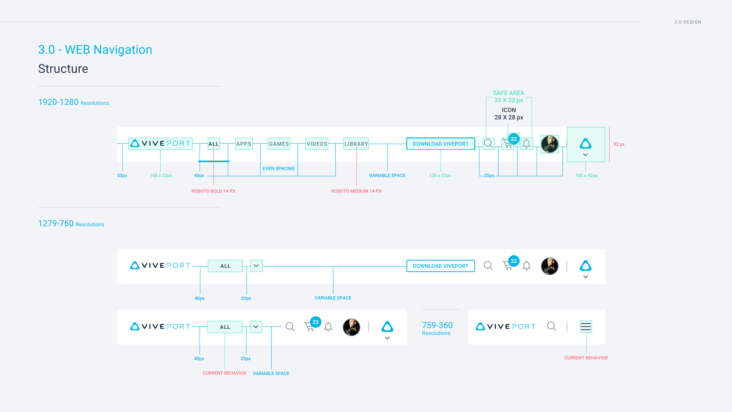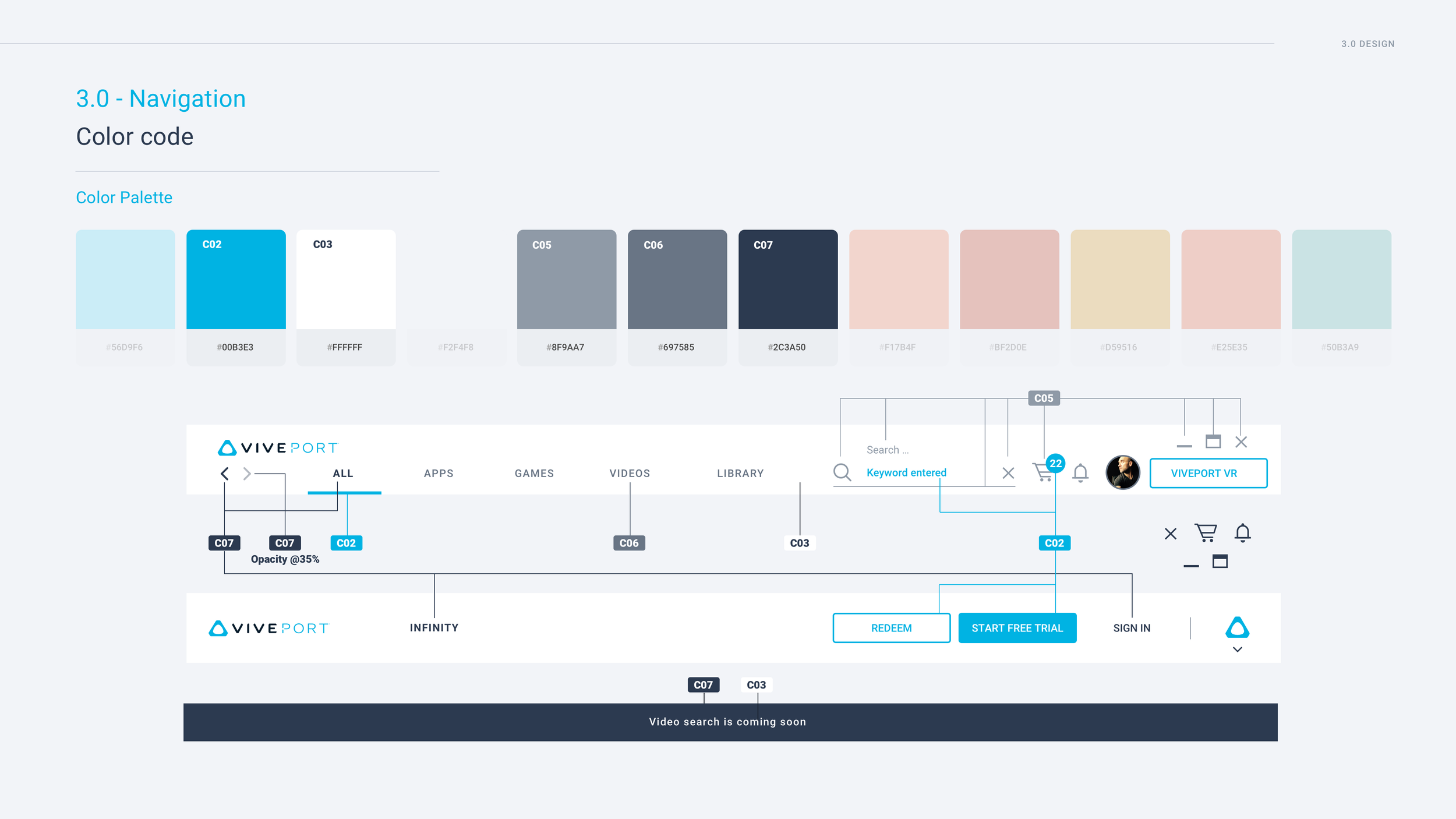 The challenge ahead of us was to design a set of experiences for VR / Viveport Store and tutorials while unifying this work with any 2D areas related to this technology, hence the effort of creating the Design System, constant user testing, in device, on desktop and even paper prototypes to validate the possible solutions to each individual experience and benchmark the processing power of the device to adapt any graphics and features that might be out of scope but that will be used later on.